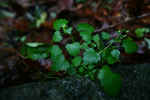 잎은 마주나기하며 심장형 또는 원형이고 둔두 심장저이며 길이와 나비가 각 1-2.5cm로서 양면에 털이 있고 가장자리에 둔한 톱니가 있으며 엽병은 길이 5-20mm이다.